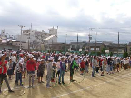 失敗しないように掛け声を上級生がかけていたり、グループのみんなで回数をかぞえたりと、班の中での交流が深まってきていることがよくわかりました。