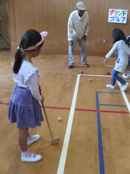 地域の方と一緒に遊び、子どもたちはとても楽しそうに活動をしていました。地域の方々も子どもたちと笑顔いっぱいに接しておられました。
