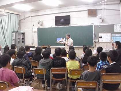 今日は、図書ボランティアの方に来ていただき、各学級でお話会を開いていただきました。