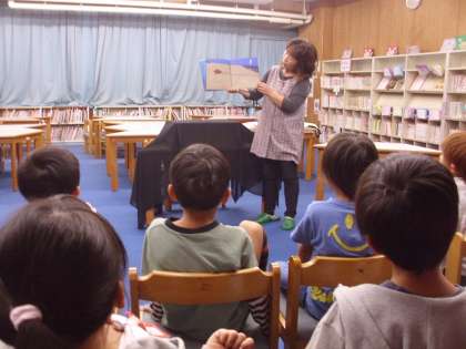 大型絵本や紙芝居などを表現豊かにお話ししていただきました。子どもたちは本の世界に引き込まれている様子で、集中してお話を聞いていました。お話しの終わりには子どもたちから自然にボランティアさんへの感謝の拍手が起こっていました。