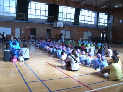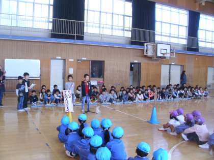 今日は、1年生が保育園・幼稚園の子どもたちを招いてキッズフェスティバルを行いました。