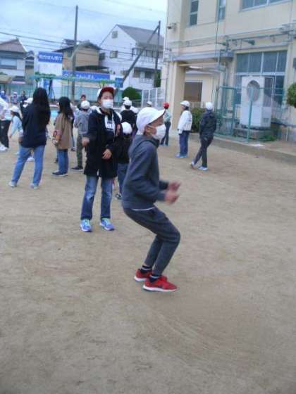 はじめは、跳ぶことが怖くて緊張していた低学年の児童も、だんだんと跳ぶことができるようになり、笑顔いっぱいで班のみんなと一緒に活動していました。