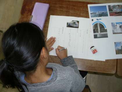 『屋根がガラス張りだから、景色が見えやすい』『キッチンがあるから料理ができる』など、子どもたちは車の様子をよく見て文章にまとめていました。