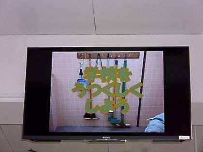 学校をきれいにしようという呼びかけと、各清掃場所での掃除の仕方をクイズやわかりやすい映像で説明していました。『キレイキレイポイント』という要点は、1・2年生にもよくわかり、どの学年の子どもたちも真剣に発表を聞いていました。