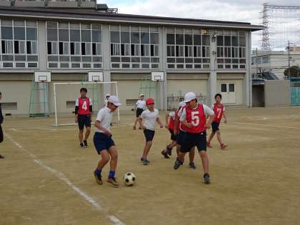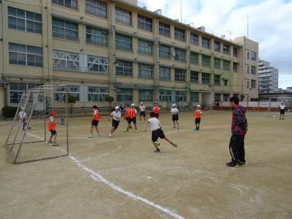 ボールクラブでは、4〜6年生の混合チームをつくり、サッカーをしました。