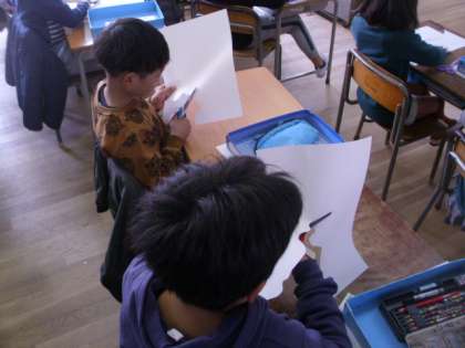 2年生は図画工作科で「はさみのアート」という活動をしました。
