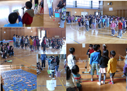 1年生は11月26日に幼稚園や保育園の先生や子どもの皆さんを招待してキッズフェスティバルをひらきます。今日はその準備のために、店員役とお客さん役に分かれて練習していました。