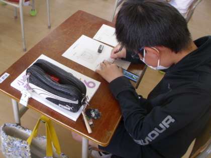 6年生は算数の時間に、様々な図形の展開図の作図に取り組んでいました。