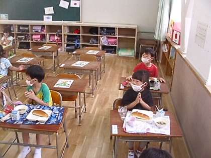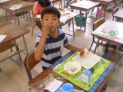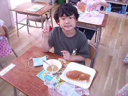 また、今日から給食が始まりました。1年生は小学校に入っての初めての給食で、とても楽しみにしていたようです。「めっちゃおいしい!」「おかわりしたい」といいながら、おいしそうに食べていました。