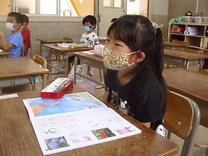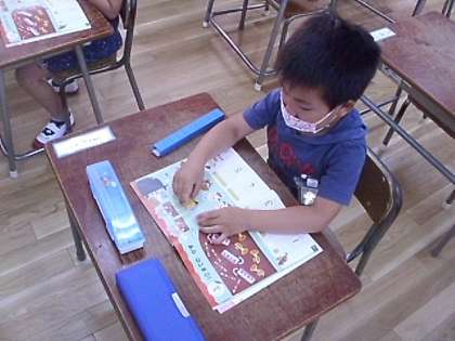 国語では、ひらがなの読み、書き、言葉集めをしました。【う】の言葉集めでは、「うし」「うわぎ」「うきわ」など、たくさんの言葉を子どもたちは発表することができていました。