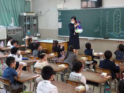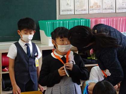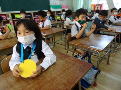 保護者会の間に子どもたちは、それぞれの教室で楽しみにしていた記念メダルを担任の先生から受け取りました。