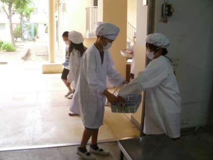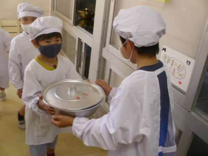 委員会活動開始から3週間がたち、給食委員会の子どもたちは、食器やおかずの入れ物を渡す作業を素早く正確に行うことができるようになってきています。