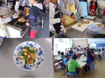 作ったのは「厚揚げとピーマンの味噌炒め」です。子どもたちは自分たちが作った料理を「おいしい」と言って食べていました。