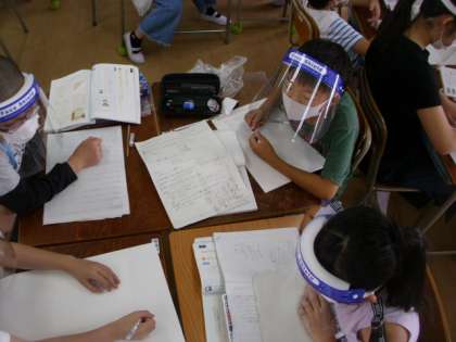 先日様々な地域で大きな被害をもたらした『7月豪雨』のこともあり、児童は真剣に話し合い、どうすれば読み手が意識をもって新聞を見てくれるかを相談していました。