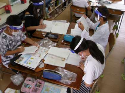 6年生は国語科の授業の取り組みで「防災新聞」を班で作成しています。