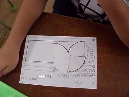 円を4等分・8等分にして、面積が求めやすいように形を変形していくと「ちょっと変わった長方形みたい」「いや、平行四辺形と違うかな」と子どもたちは話をしていました。