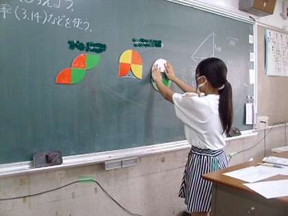 6年生は『円の面積を求めよう』で習熟度別4クラスに分けての学習をしています。今日は、実際に円の面積を公式に当てはめて求めるには、どうすればよいのかをみんなで考えました。