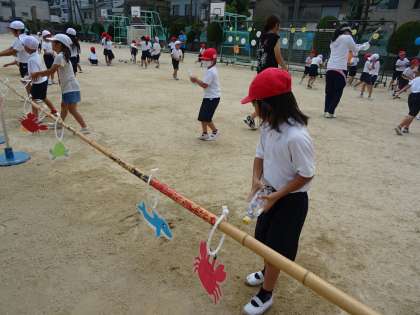 順番を守って的当てをしたり、先生の指示をよく聞いて行動したりするなど、1学期の子どもたちの成長ぶりが随所に見られました。
