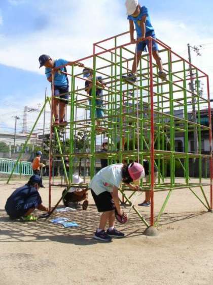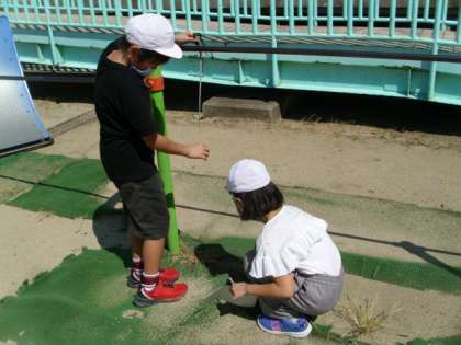 今日は子どもたちが運動場に出て、いろいろなものの長さをペアで協力をして測りました。学校の柱や電柱の周りの長さ、ベンチの幅、ジャングルジムの高さなど、普段定規では測ることが難しいものの長さを調べることができ、子どもたちは巻き尺で測ることの良さを実感することができました。