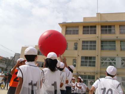 6年生は、『大玉ころがし・送り』とリレーを行いました。
