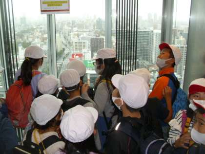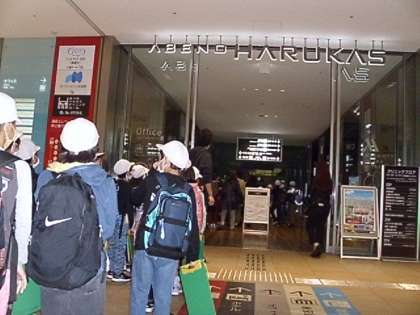 10月9日(金)に3年生が校外学習にあべのハルカスへ行き、その後JR環状線に乗って1周見学をしました。