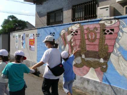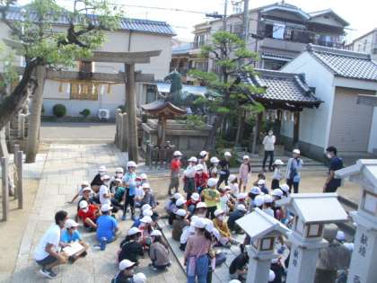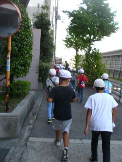 写真は町たんけんのようすです。