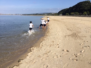 写真は砂浜遊びの様子です。