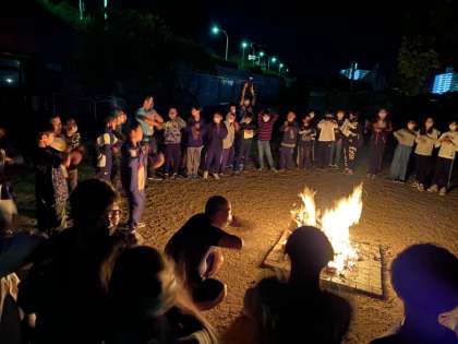 キャンプファイヤーの終わりにみんなで夜空を見上げると、満点の星空になんと流れ星が!