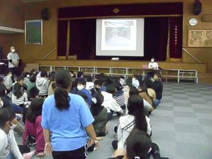 多文化共生理解の学習の一環として、ソンセンニムに来ていただき、5年生と6年生の子どもたちはソンセンニムのお話を聞きました。