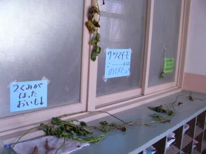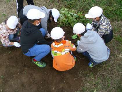 2年生が春に学習園に植えたサツマイモを掘っていました。