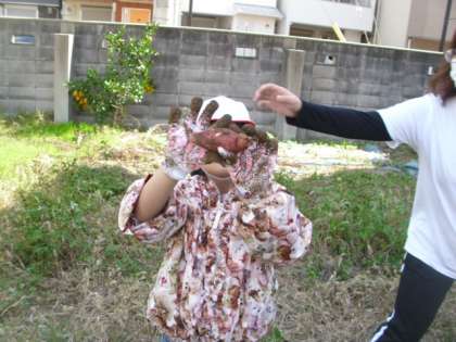 今年は夏の炎天下の影響か、育ちが悪く、掘っても掘ってもなかなかサツマイモが出てきませんでした。そんな中、「あったー」と奇跡の一本を発見! 「やったー」「よかったね」「大切にせな」とみんなで喜びを分かち合っていました。