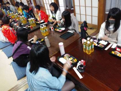 たくさん歩いて子どもたちはお腹がペコペコだったようです。