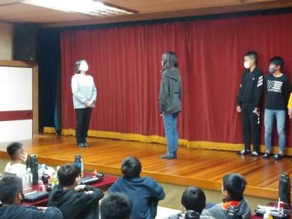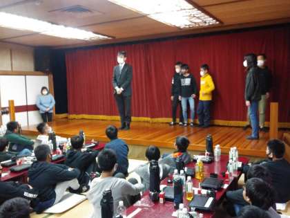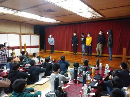 代表の子どもが宿舎の方へ、宿舎で快適に過ごせた感謝の気持ちを伝えました。