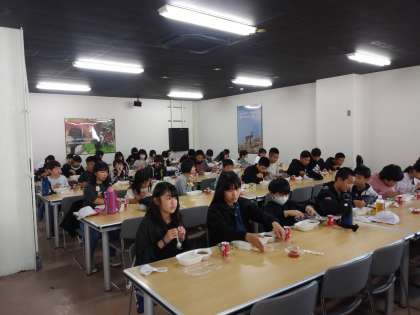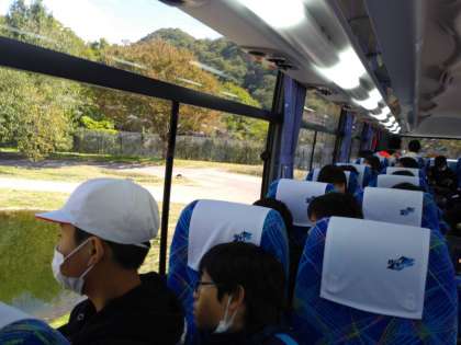 お昼前に姫路セントラルパークに到着し、バス内でサファリエリアの見学をしました。みんな覗き込むように動物たちのようすを見ていました。