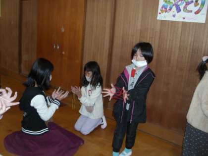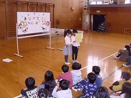 1年生が6年生のお兄さんお姉さんに掃除のお手伝いや一緒に普段から遊んでもらっている感謝の気落ちを伝えるために、ありがとうの会を開きました。1年生が生活科で学習をしている昔遊びなどを紹介し、一緒に楽しみました。