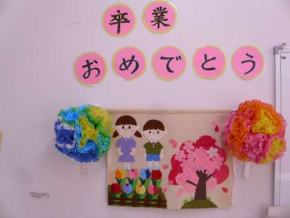 卒業生の皆さんに向けて、様々な場所でお祝いの掲示物が掲示されています。