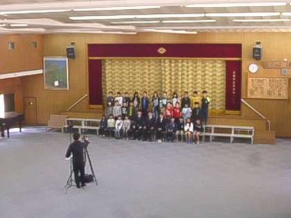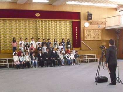 朝から多目的ホールで全学級の学級写真の撮影を行いました。