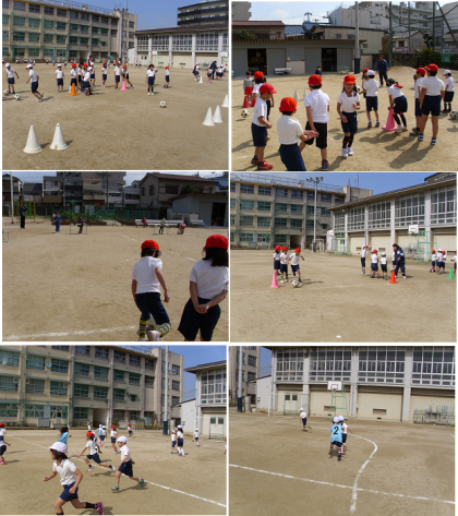 3月に入り、今日はとてもあたたかい一日でした。1年生が体育でいろいろな運動に挑戦していました。