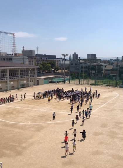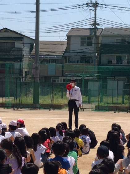 運動場へ集合後、校長先生から地震・津波から命を守ること、避難のときに大事なことについてお話がありました。
