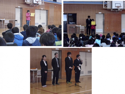 今日は始業式でした。昨日に引き続き雨だったので体育館でおこないました。今年新しく敷津浦小学校に入ってきたお友達の紹介や先生の紹介がありました。そして6年生の今年1年の目標が書かれた作文を発表してもらいました。最後にみんなが楽しみにしていた担任の先生の発表がありました。その後各学年に別れてクラス発表をおこないました。