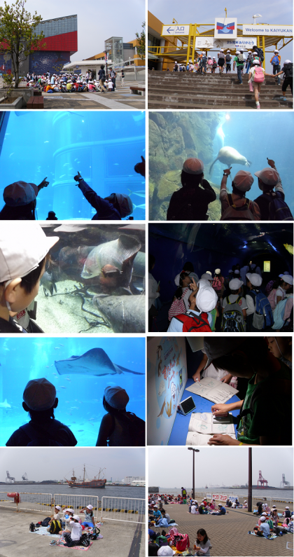 今日は3年生が校外学習で海遊館に行きました。大勢の人が見学している中でしたが、様々な海の生き物をみたり、実際にさわったりしました。お弁当は海の見えるところでおいしくいただきました。