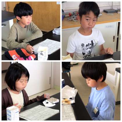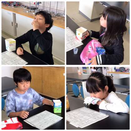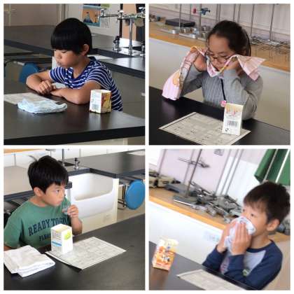 フッ化物洗口液の「ぶくぶくうがい」の仕方をしました。