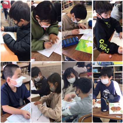 「100倍すると、小数点が右へ2こ動くから・・・」と、既習内容を確認しながら問題に取り組みました。