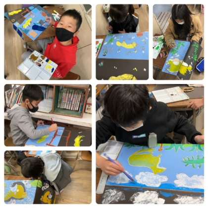 国語で学習した「ごんぎつね」の世界を版画で表現しています。