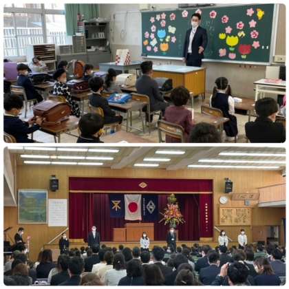 天候に恵まれ、新1年生75名が敷津浦小学校へ入学しました。