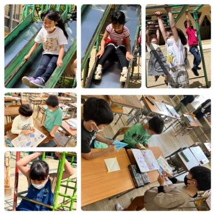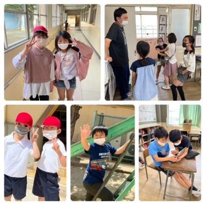 外遊びをする子、教室で過ごす子、みんな休み時間を楽しんでいます。