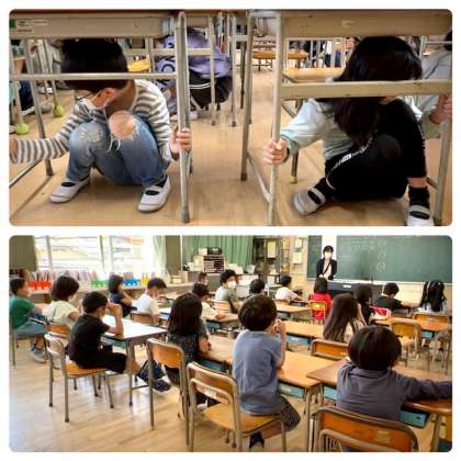 子どもたちが学校にいる間に地震が発生した場合、落ち着いて安全に行動するための訓練です。
