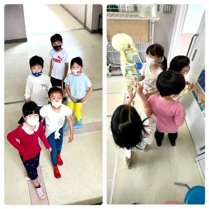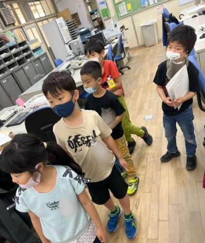 校内にいろりろな施設を実際に見学したり、インタビューをして触れ合ったりすることで1年生は徐々に学校生活になれていきます。