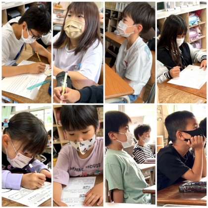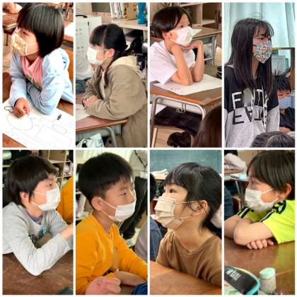 子どもたちは自分の考えをワークシートに書いたり、友だちの意見を聞いたりしていろいろなことを考えました。