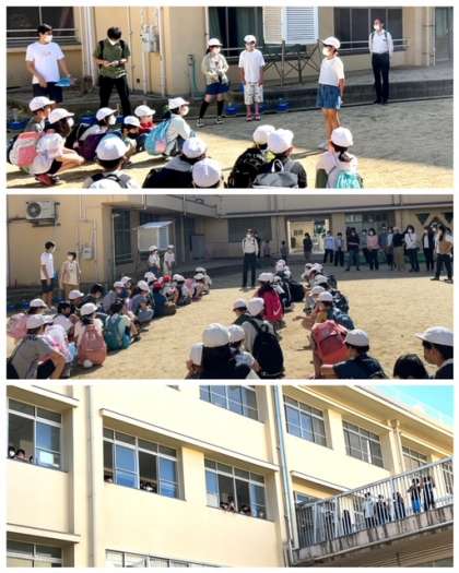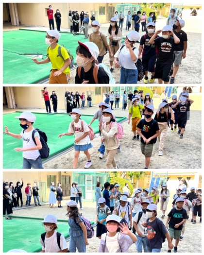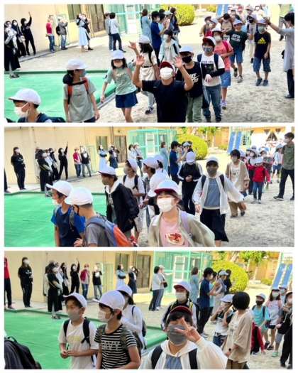 保護者のみなさん、教職員、他学年に見送られて元気に出発しました。